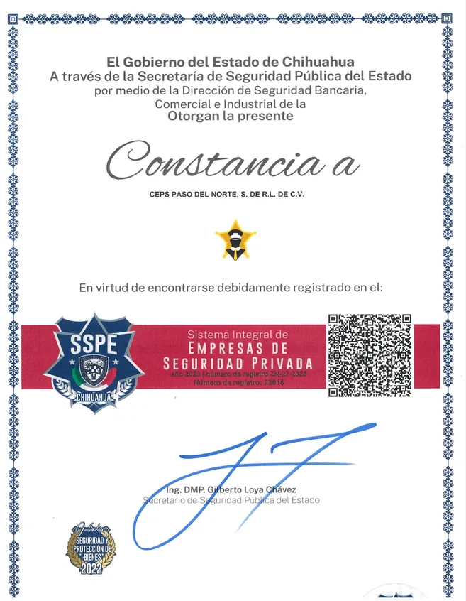 Otorgada a empresas que cumplen con todos los requisitos que se establecen en la Ley de Seguridad para el Estado de Chihuahua.